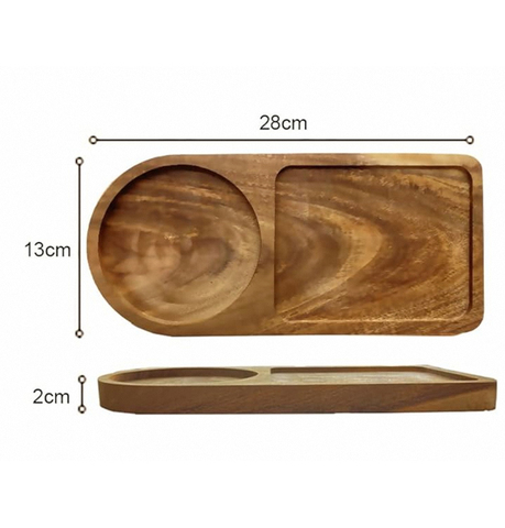 Sustainable Wood Bamboo Serving Tray Plate Dish for Coffee Tea Party Food with Coaster Features